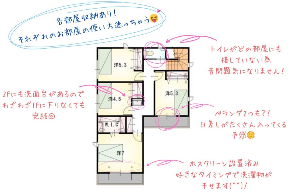 2階にも洗面化粧台・トイレがあるのも便利です!