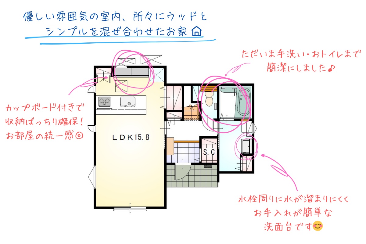 食器洗浄乾燥機・IH3口コンロ・カップボード・ダストボックス・浄水器・浴室乾燥暖房機・2階洗面化粧台・高機能トイレ・室内干し・ウォークインクローゼット・シューズクロークなど…他にもいっぱいあります!