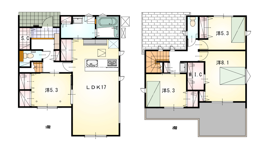 2階にも洗面化粧台・トイレがあるのも便利です!