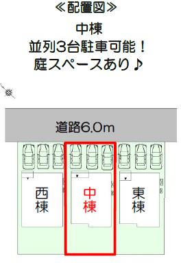 駐車スペースは広々並列3台駐車可能!庭スペースもあります♪
