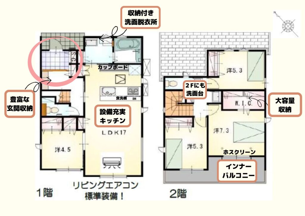 玄関収納(シューズクローク・シューズボックス)やホール収納など充実しております☆