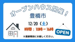 こんにちは😊 12/20(土)、21(日)豊川市美園の物件で 現地案内制オープンハウスを開催いたします✨ 時間:10時~16時 ※直接現地にお越しください。 豊川市美園三丁目2 […]