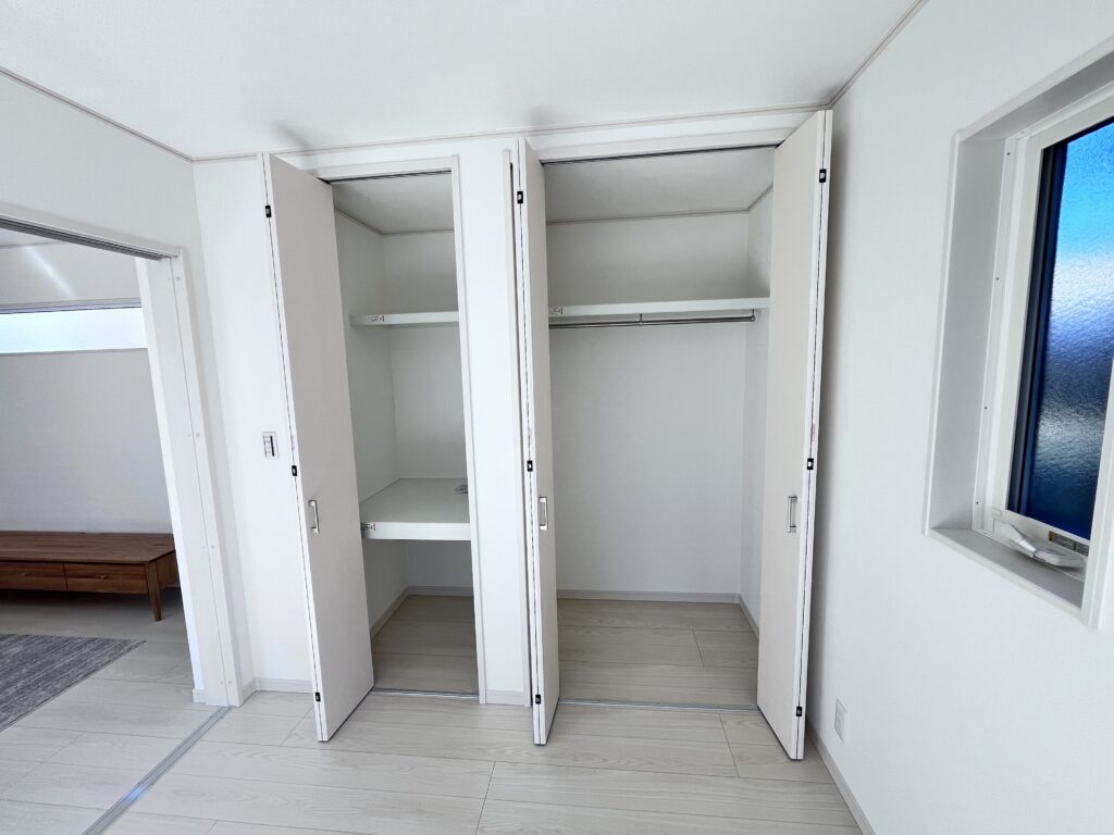 1階の4.5帖の部屋には収納スペースが二つあります!開いてLDKと一体化することもできますし、外にも出られるようになっています!