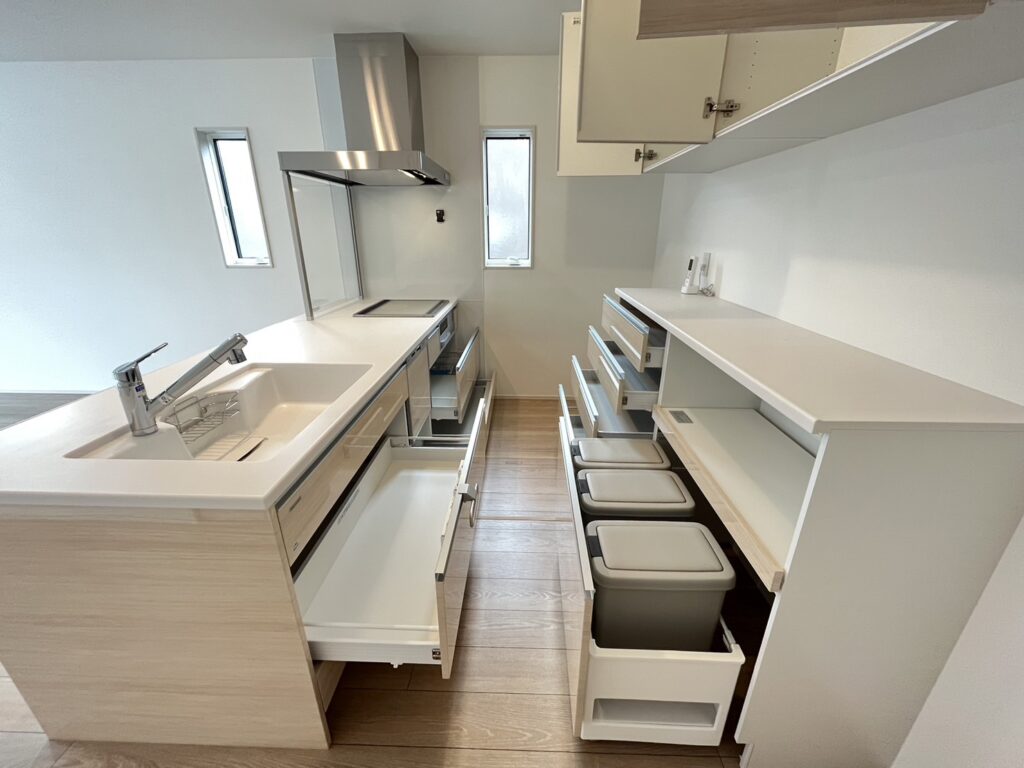 室内の仕様も充実!対面式キッチンやリビングエアコン、各階トイレ&洗面台など嬉しい標準設備😊2階主寝室のW.I.Cは1.7帖分♪