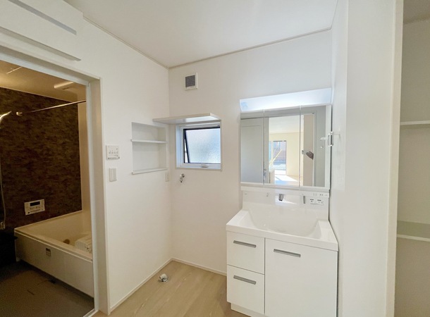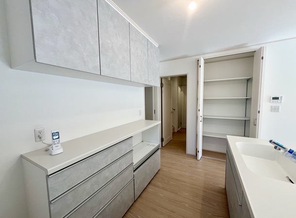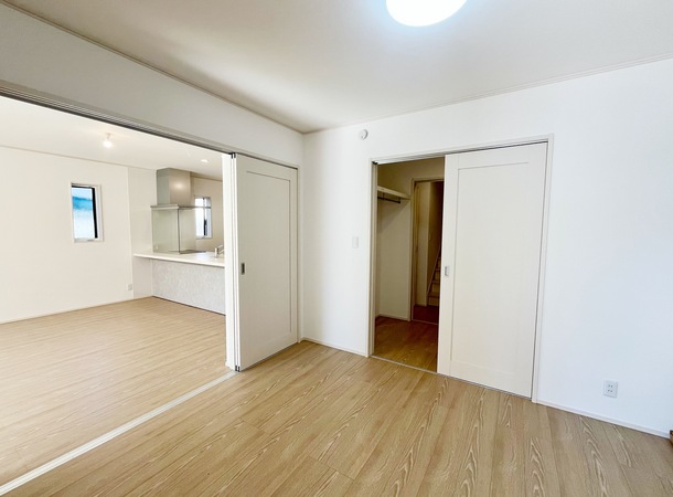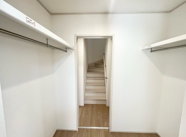 1階洗面室前と6帖居室を回遊できるファミリークローゼット!