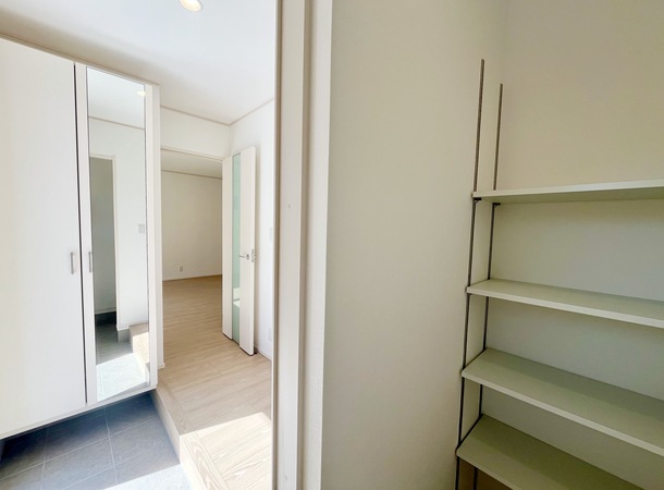 大きめなシューズクローク、ベビーカーなどもしまえて玄関もスッキリ!
