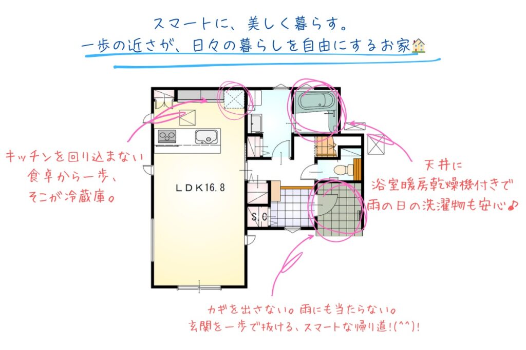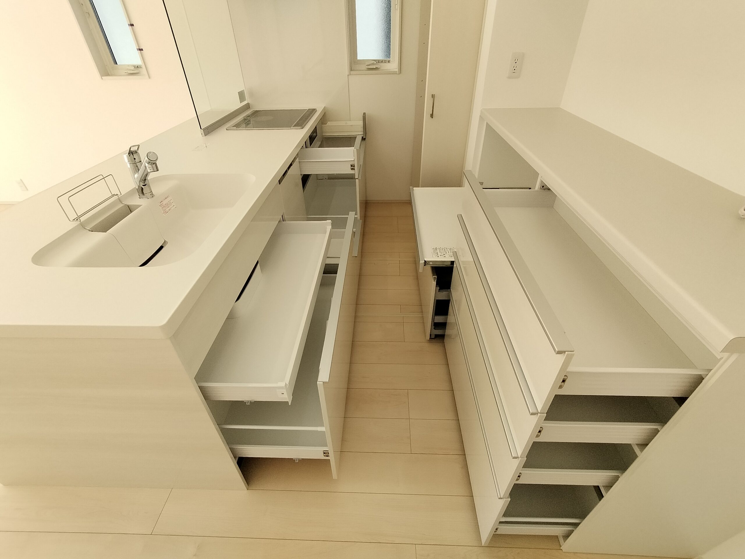食器洗浄乾燥機・IH3口コンロ・カップボード・ダストボックス・浄水器・浴室乾燥暖房機・2階洗面化粧台・高機能トイレ・室内干し・ウォークインクローゼット・シューズクロークなど…他にもいっぱいあります!