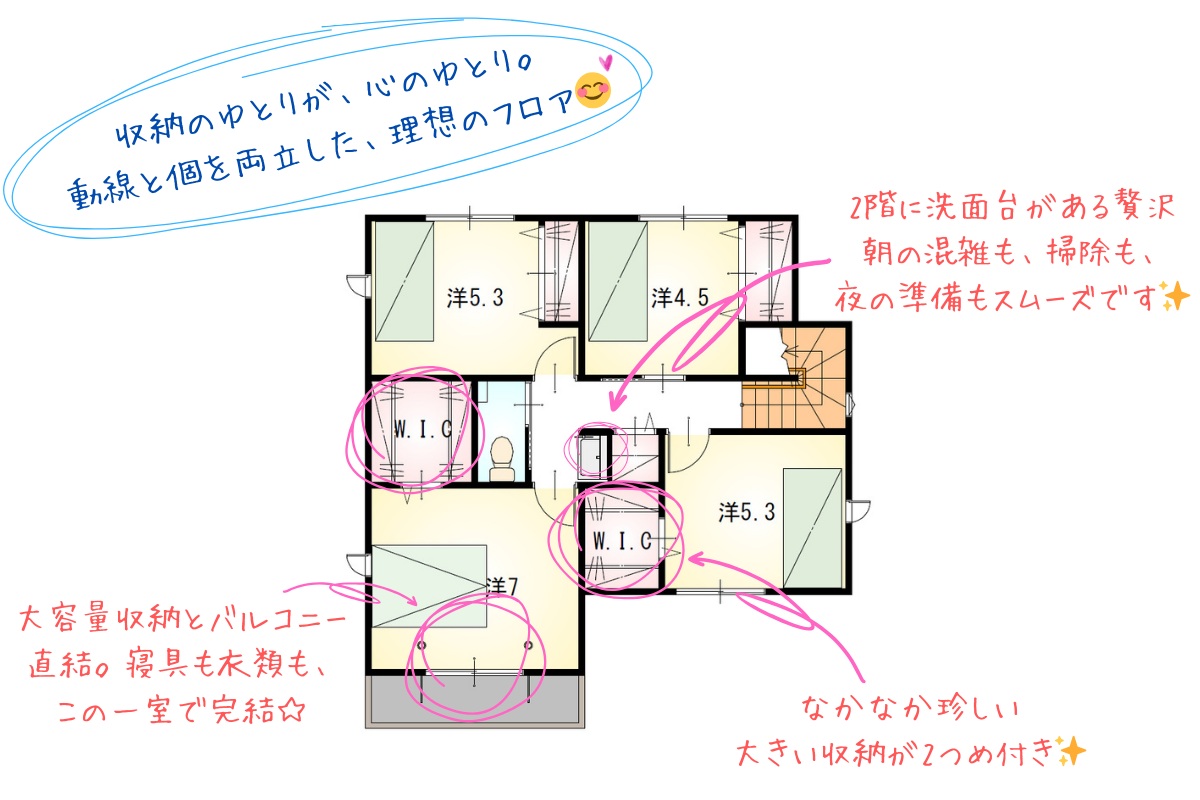2階にも洗面化粧台・トイレがあるのも便利です!