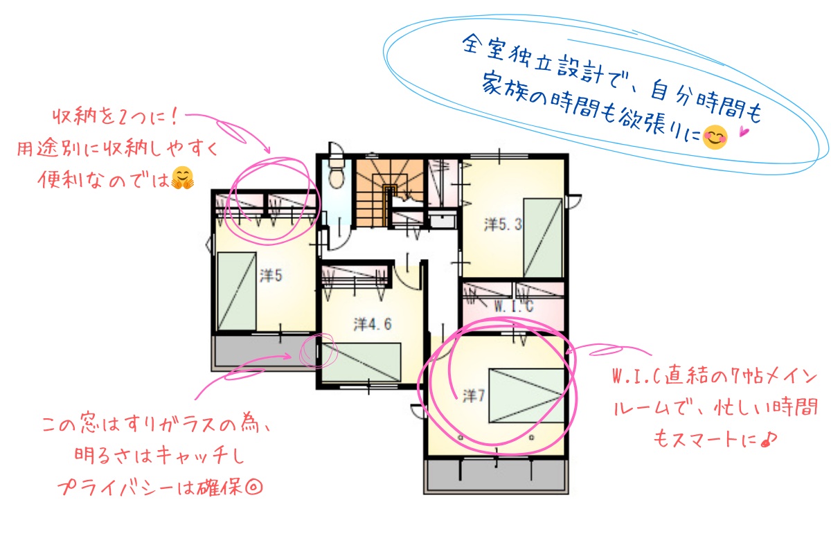 2階には4部屋もあり、それぞれの空間で過ごせます😊