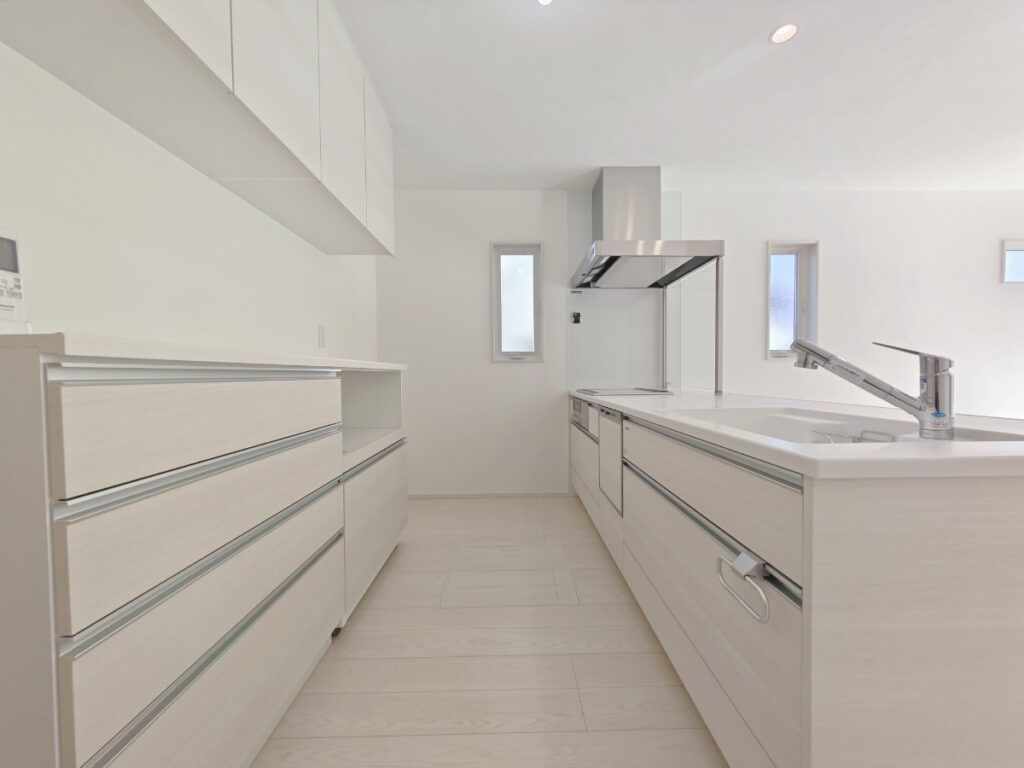 食器洗浄乾燥機・IH3口コンロ・カップボード・ダストボックス・浄水器・浴室乾燥暖房機・2階洗面化粧台・高機能トイレ・室内干し・ウォークインクローゼット・シューズクロークなど…他にもいっぱいあります!