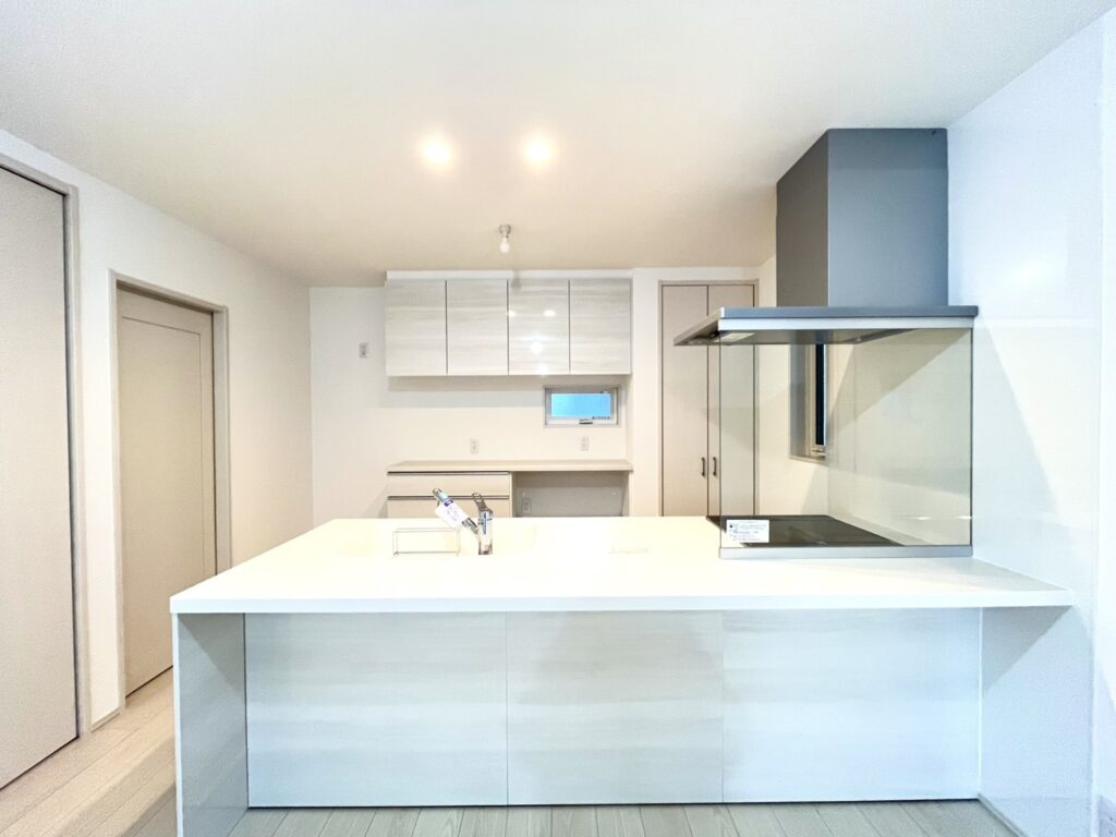 たっぷり収納OKなカップボードと対面式ペニンシュラキッチンで、キッチン回りもスッキリ開放的にまとまります✨