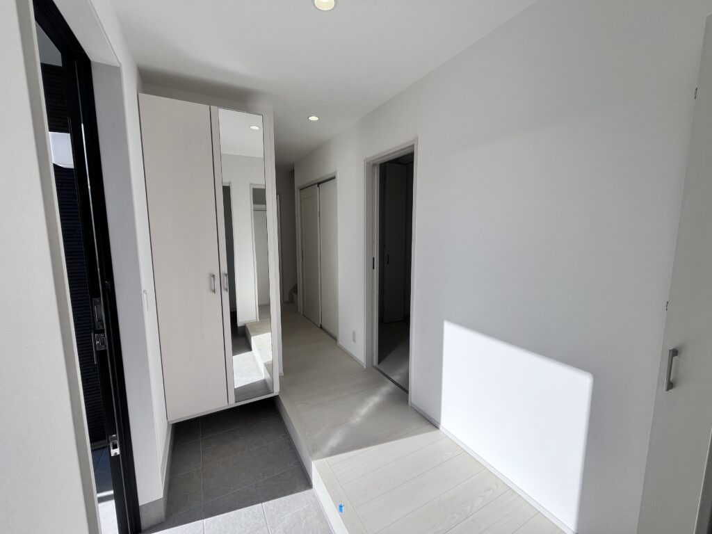 玄関には姿見付きの収納もありお出かけ前のチェックも簡単!