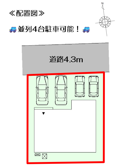並列4台駐車可能です!