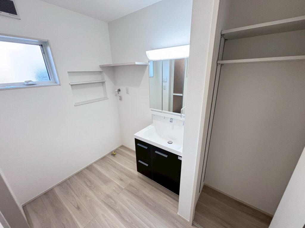 → キッチンには食器乾燥洗浄機、2階にも洗面化粧台を設置。