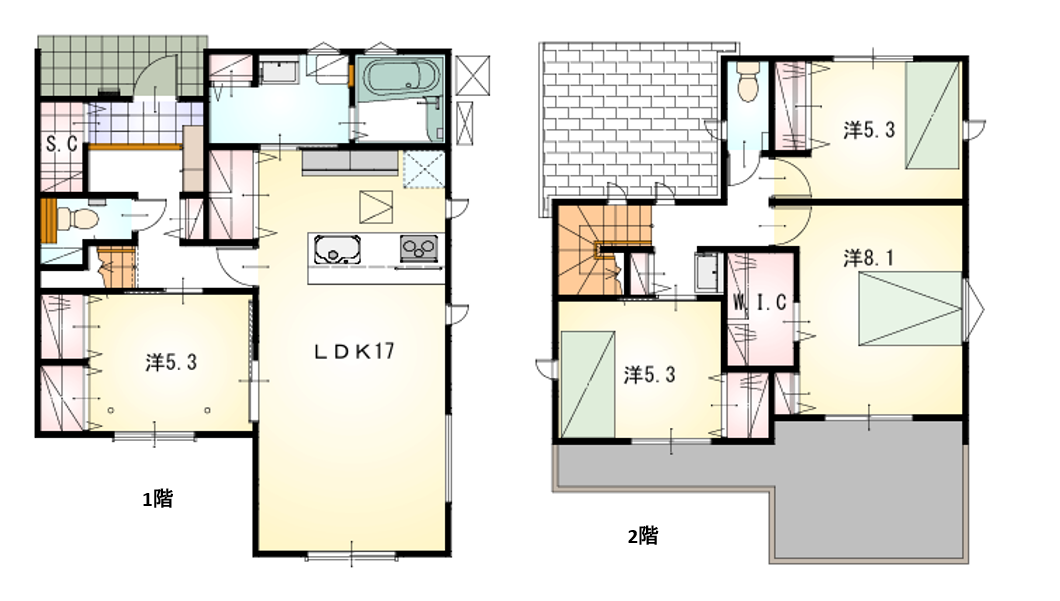 2階にも洗面化粧台・トイレがあるのも便利です!