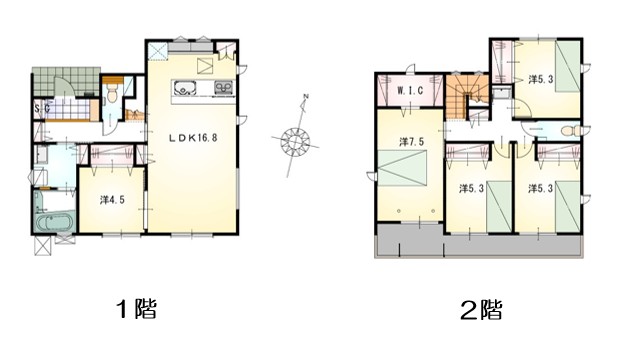 対面式キッチン、食洗機、リビングエアコン、各階洗面台&トイレ、広々W.I.C(約2.3帖分!👀)やS.Cなど、注目ポイントたくさん!