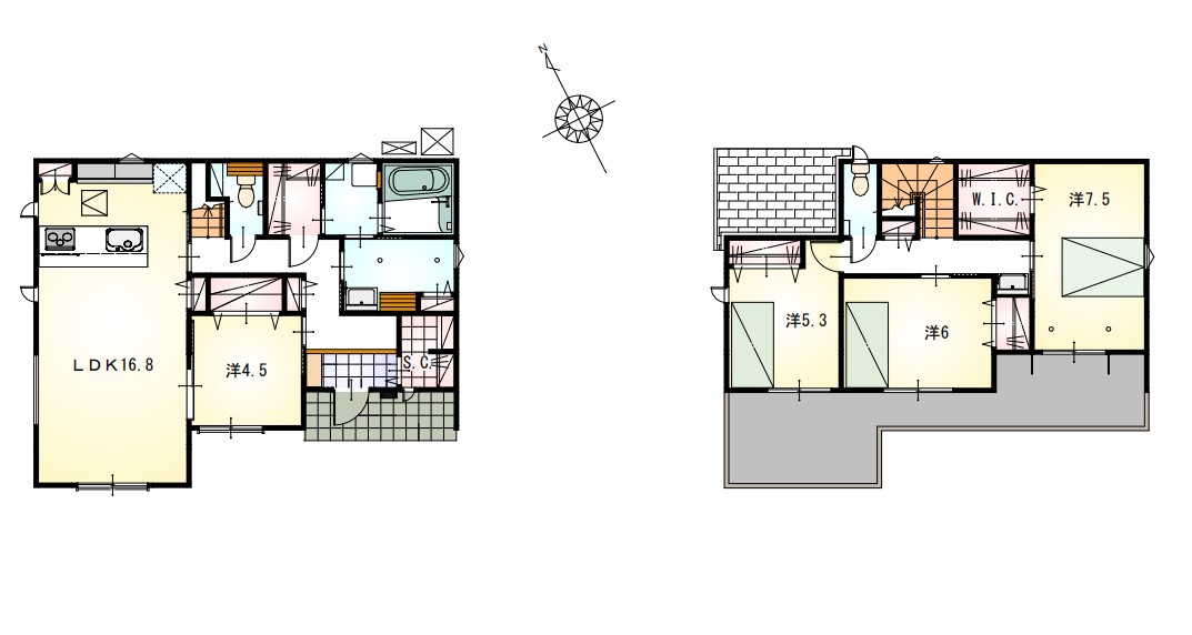 4LDK、1階のウォークスルークローゼットやウォークインタイプのシューズクロークが魅力的な間取りになっています!