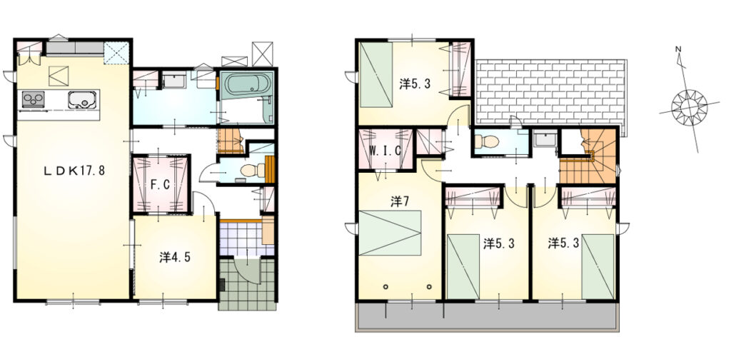 車は並列4台OK、2階にもトイレ&洗面台付きで忙しい朝もラクラク🎵