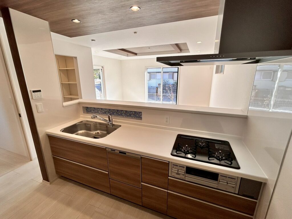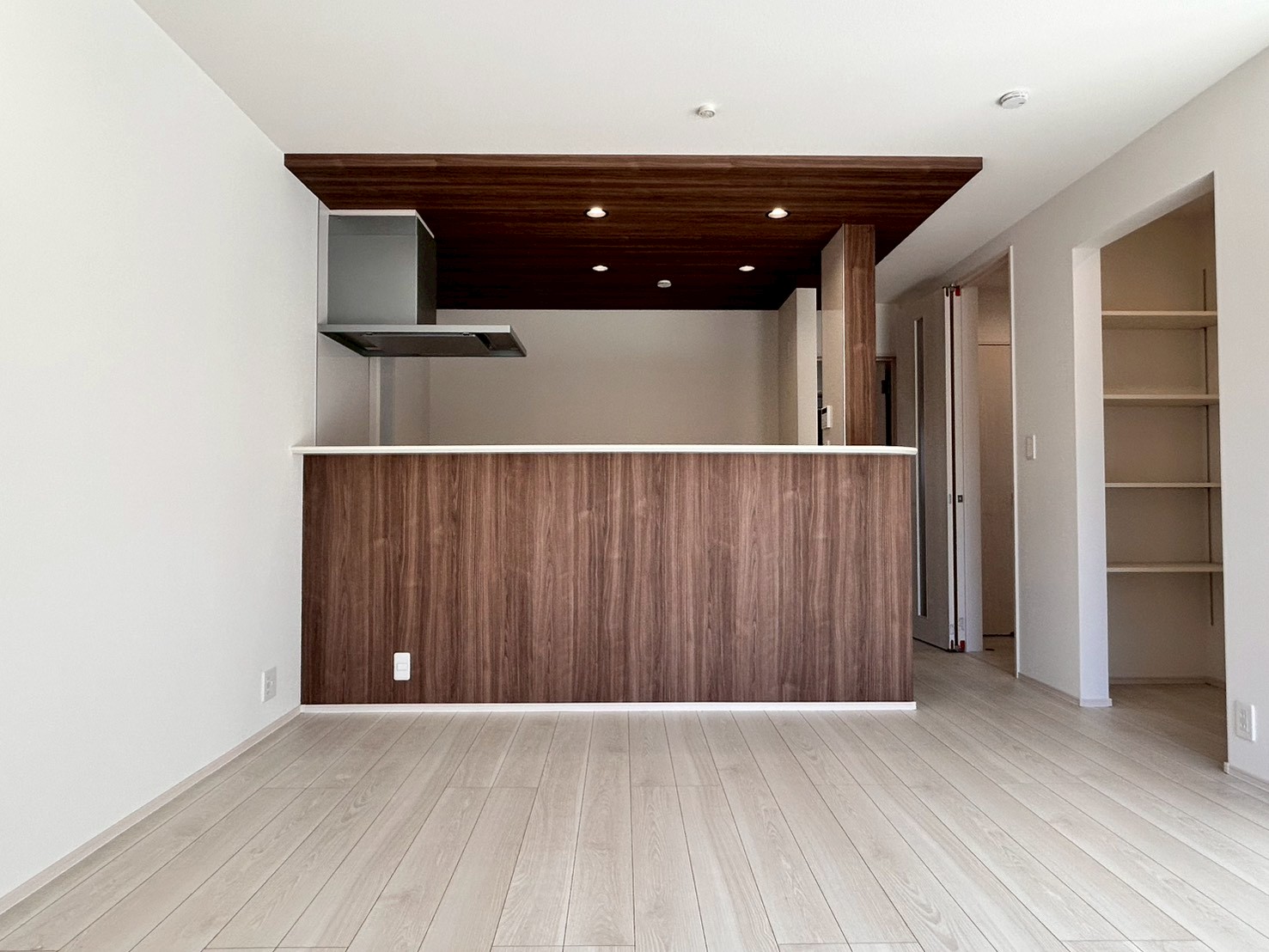 LDKには可動棚付きのパントリー完備😊折上天井&ポップアップ天井のデザインで、開放感とメリハリのある空間です✨