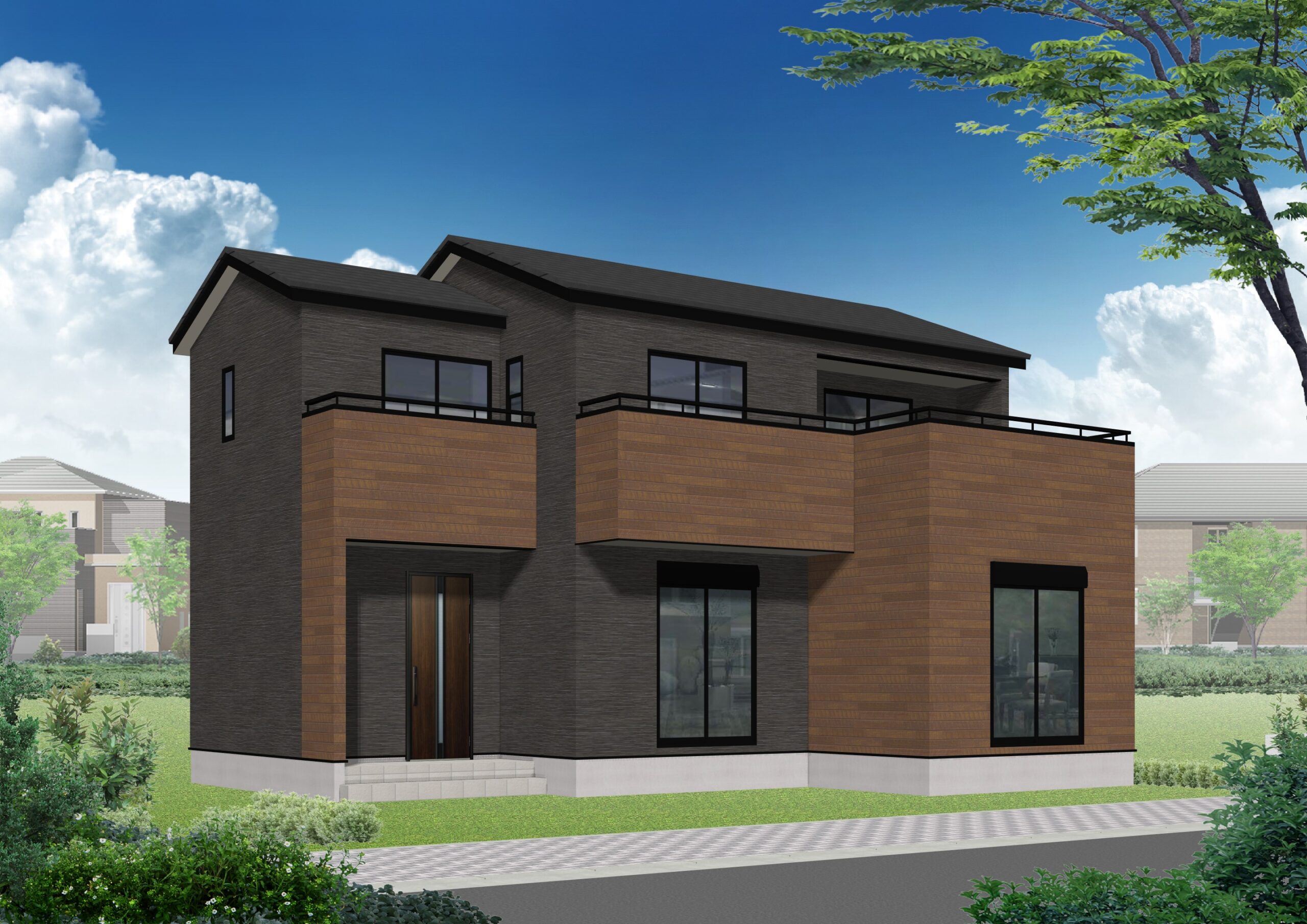 玄関や2階バルコニーも大き目、敷地自体も約55坪と広いから外も中も広くて快適です!