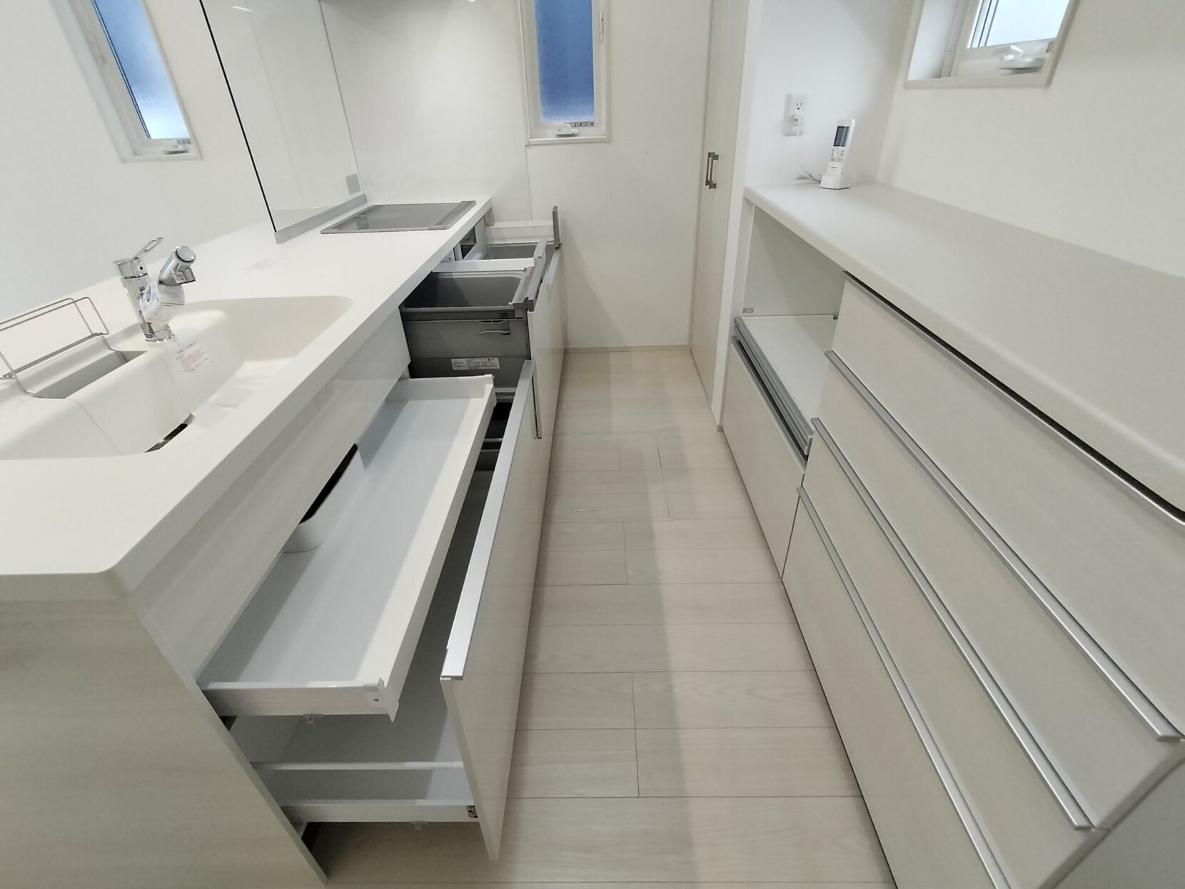 食器洗浄乾燥機・IH3口コンロ・カップボード・ダストボックス・浄水器・浴室乾燥暖房機・2階洗面化粧台・高機能トイレ・室内干し・ウォークインクローゼット・シューズクロークなど…他にもいっぱいあります!