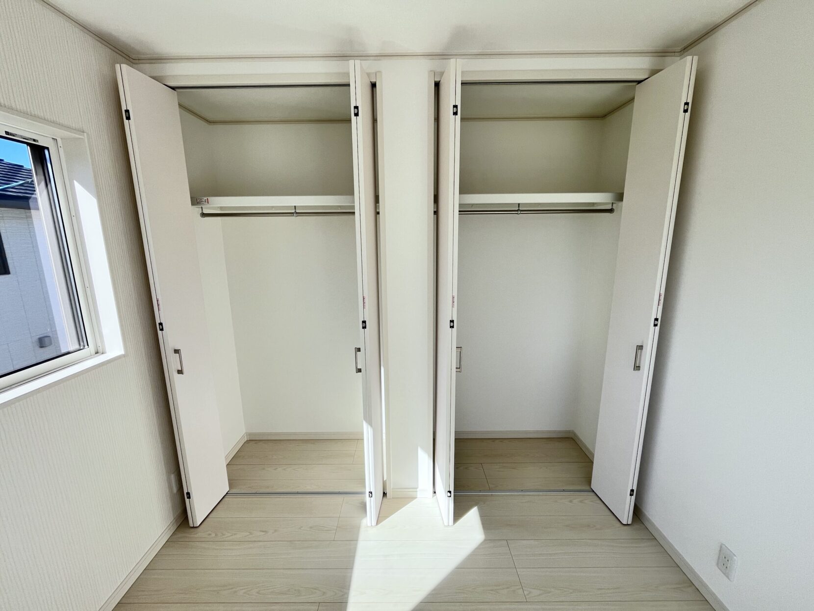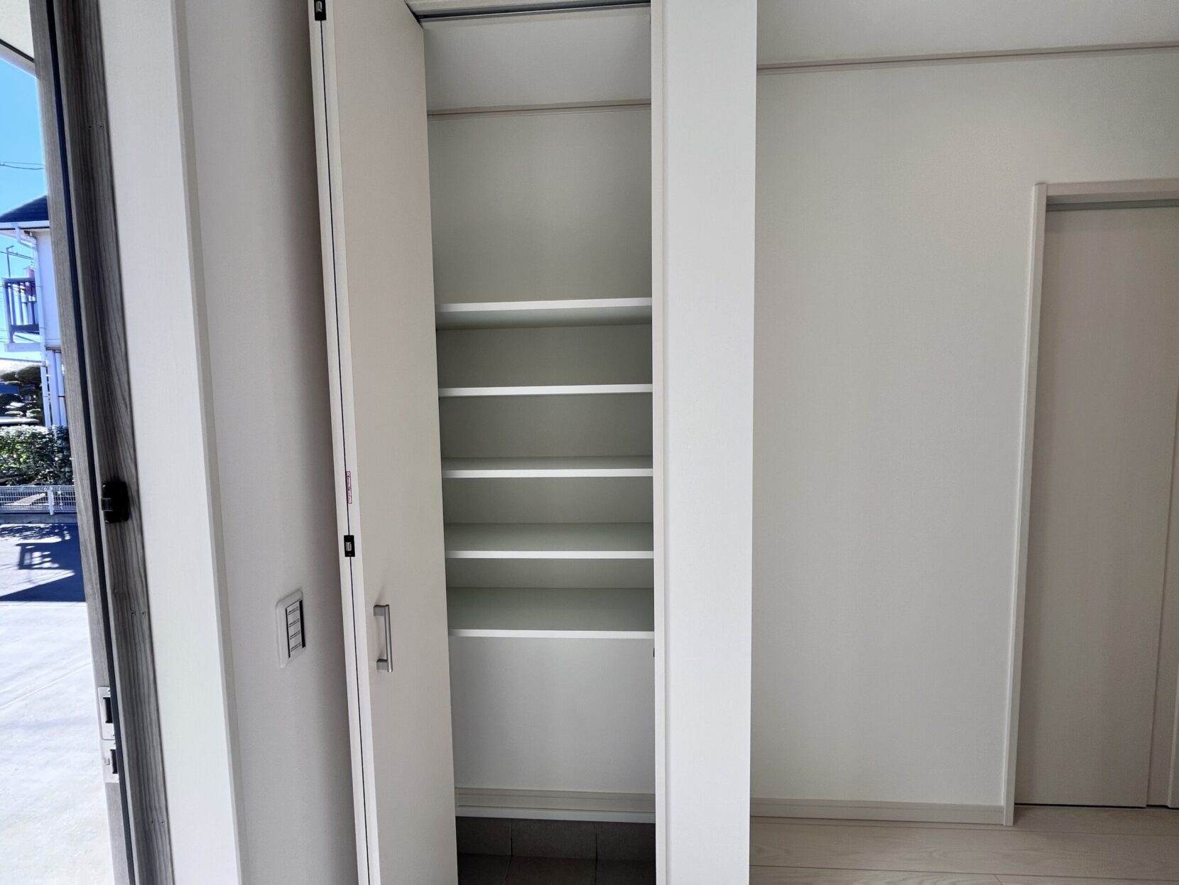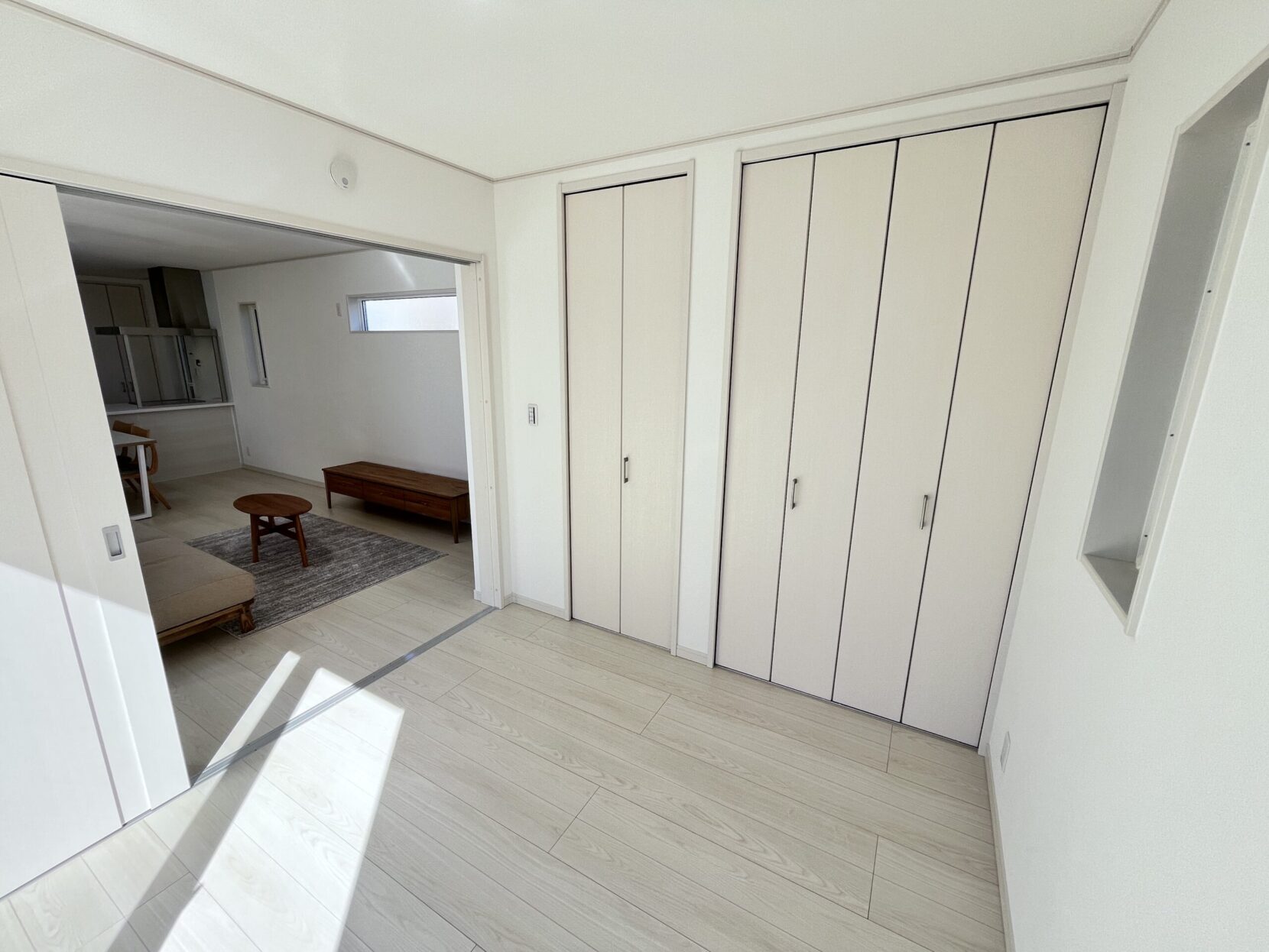 1階の4.5帖の部屋には収納スペースが二つあります!開いてLDKと一体化することもできますし、外にも出られるようになっています!