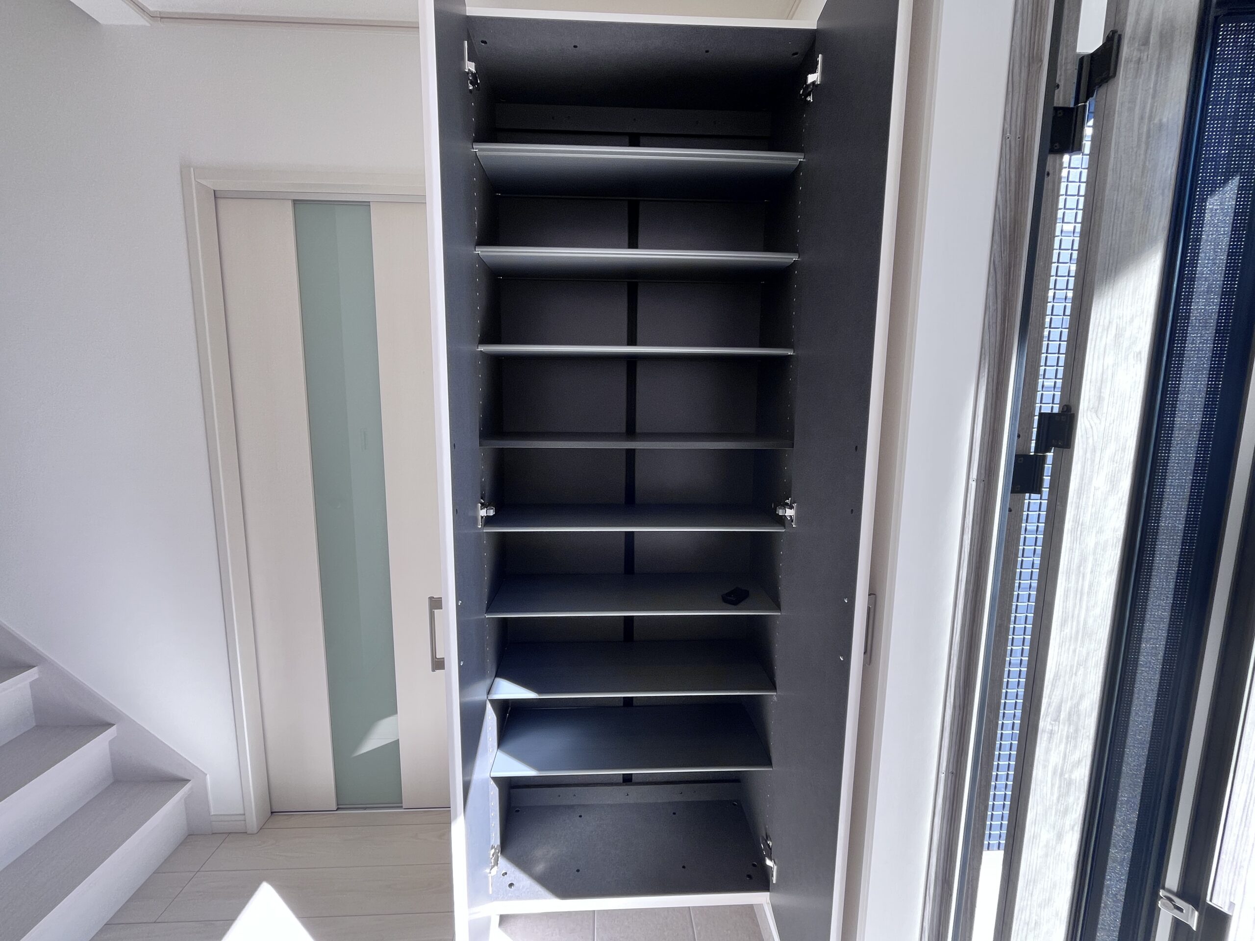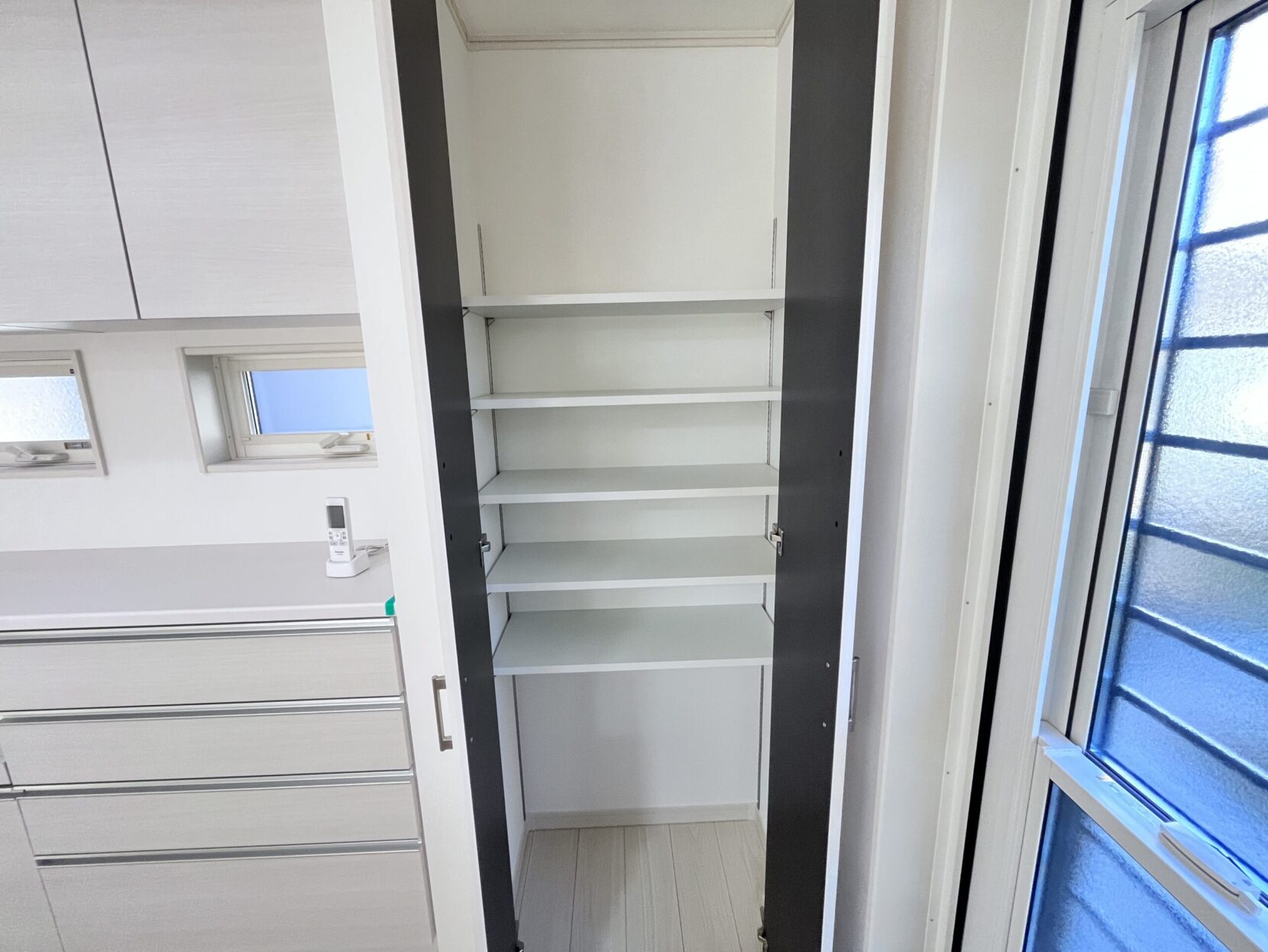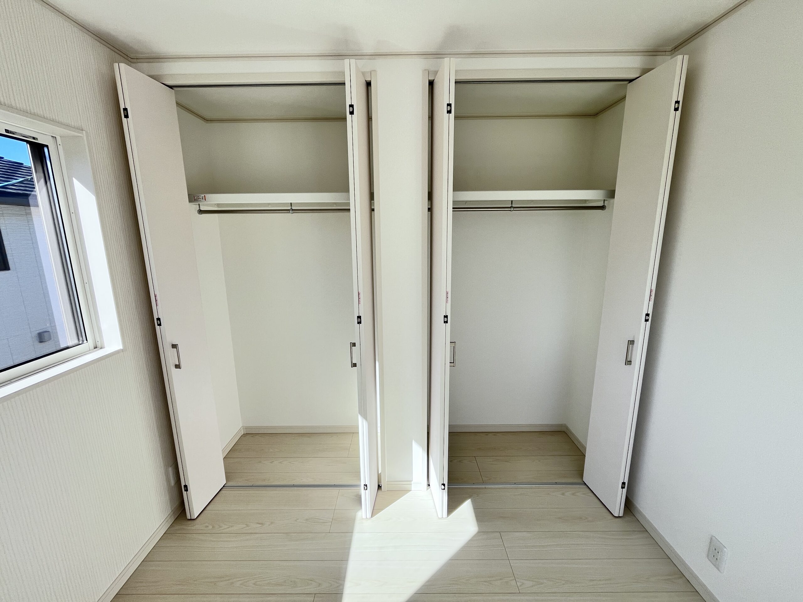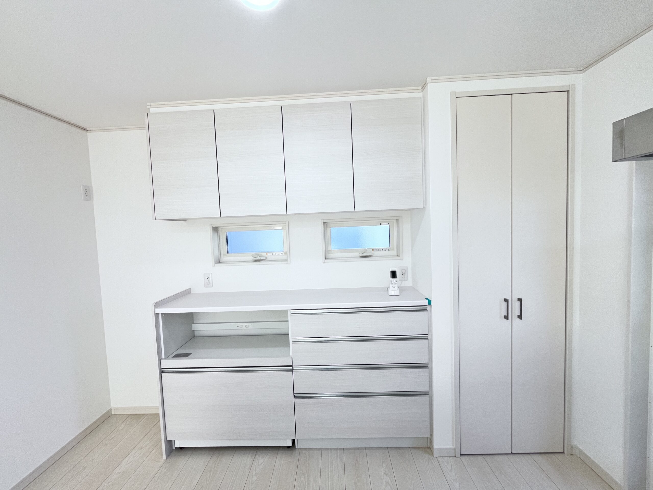 1階の4.5帖の部屋には収納スペースが二つあります!開いてLDKと一体化することもできますし、外にも出られるようになっています!