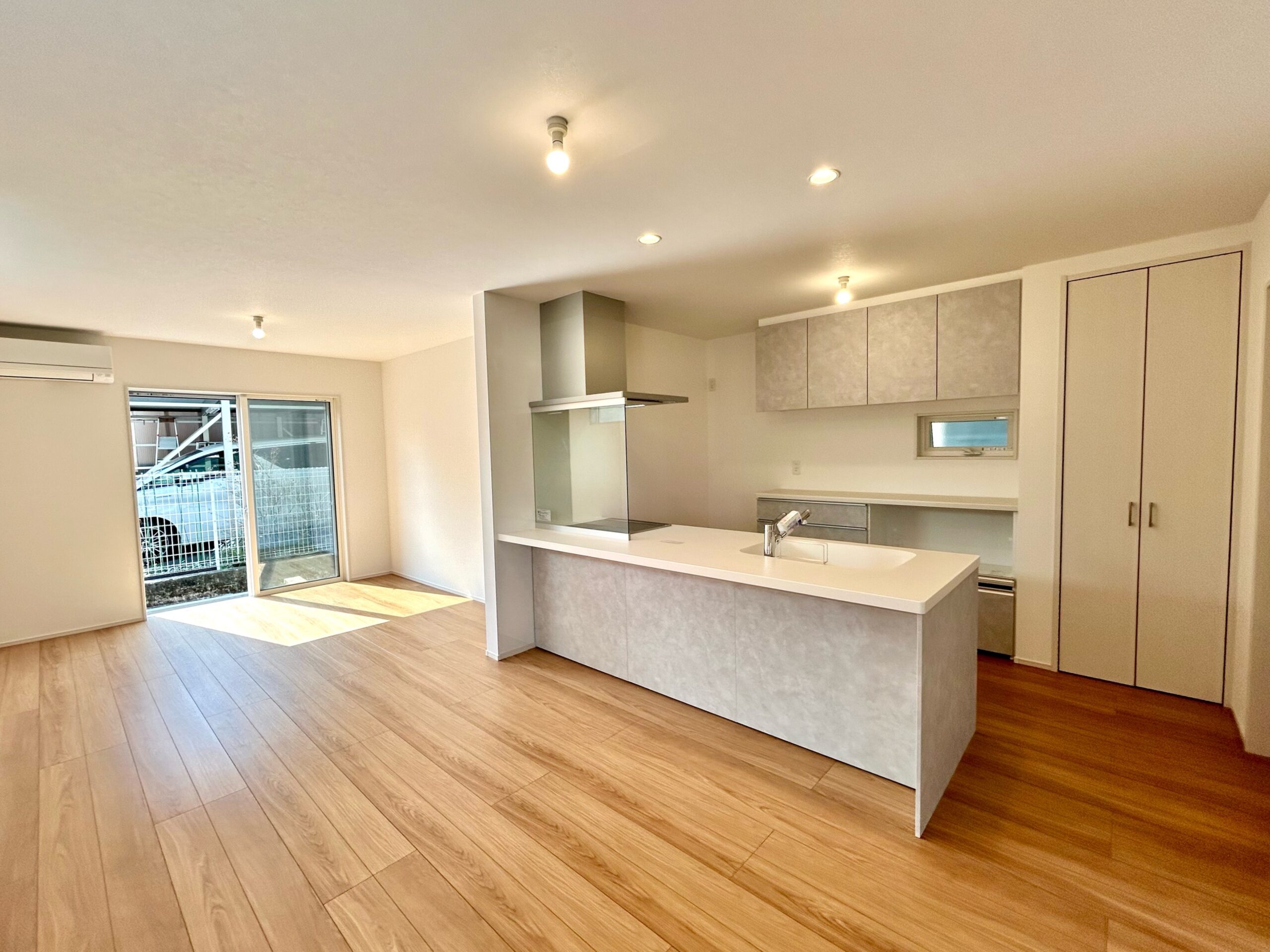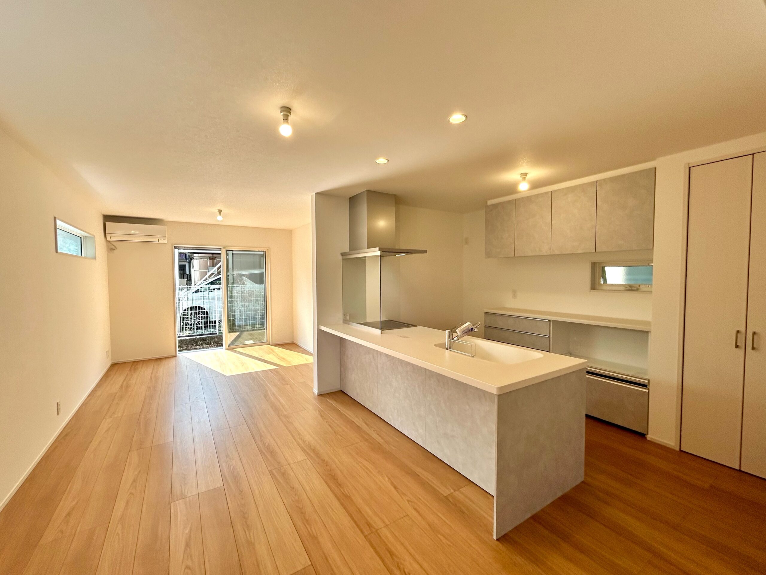 開放的だけど手元が隠せるキッチン、是非見ていただきたいです!他にも充実した設備がいっぱい!