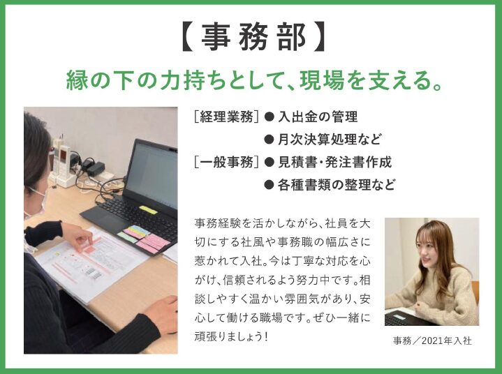 【業務内容】 新築分譲住宅、注文住宅に関する事務作業全般。